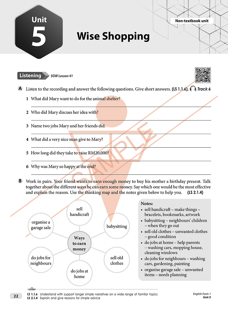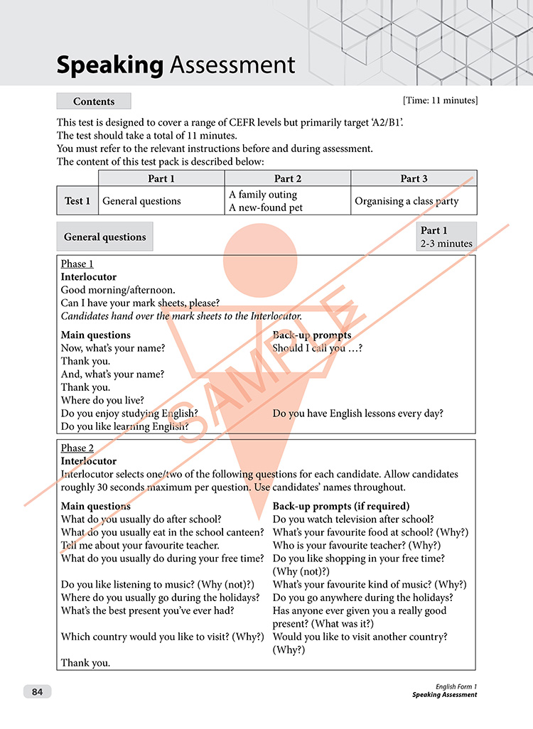 The Praktis Intensif series is a series of topical practice books for secondary school students. Each book provides exercises that fulfil the learning standards outlined in the CEFR-aligned curriculum for each form. This book prepares Form 1 students for school-based assessment at the CEFR level A2. It features a Summative Assessment following the Ujian Akhir Sesi Akademik format. PAK21 activities are also included where relevant, and a complete answer key is provided. Audio tracks are available online for the listening component.
