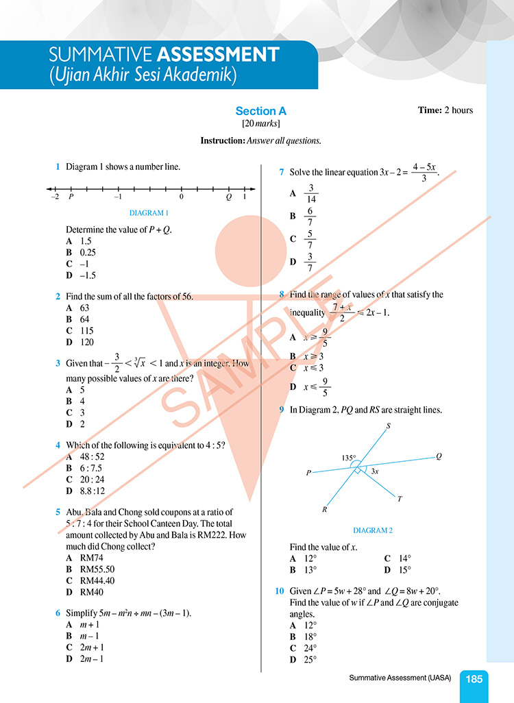 Success Plus is a series of comprehensive, effective revision guides based on the latest Kurikulum Standard Sekolah Menengah (KSSM). Success Plus Mathematics Form 1 provides in-depth coverage of the learning standards outlined in the Form 1 Dokumen Standard Kurikulum dan Pentaksiran (DSKP) and contains special features which have been carefully designed to enhance students’ understanding of each topic. Elements of the Summative Assessment (Ujian Akhir Sesi Akademik) are integrated in the book to prepare students to achieve excellence in the assessment.